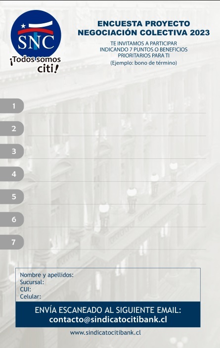 Es la participación de los socios y socias en la encuesta de 7 puntos enviada por el sindicato a tu email laboral.