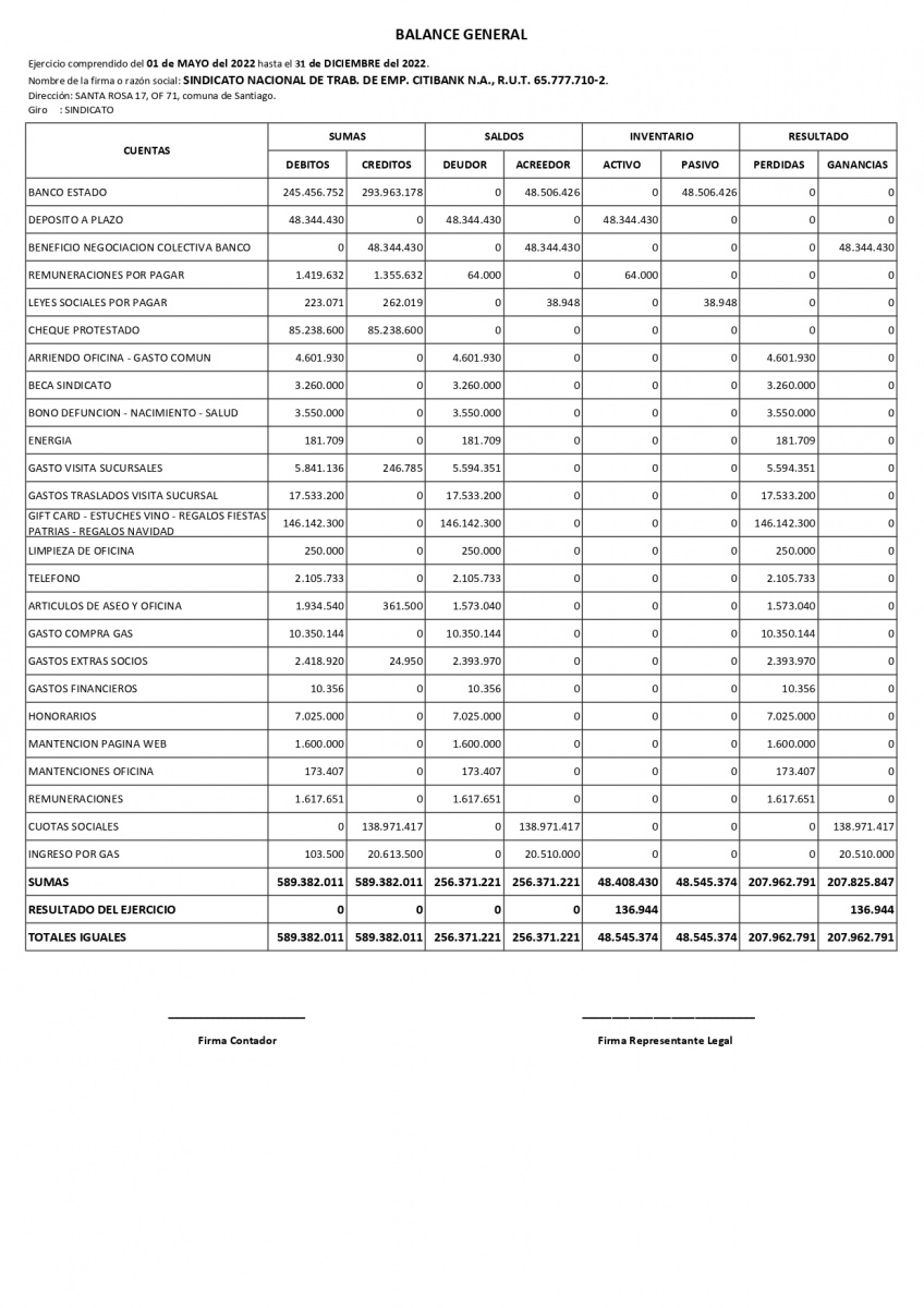 Balance de Mayo a Diciembre 2022